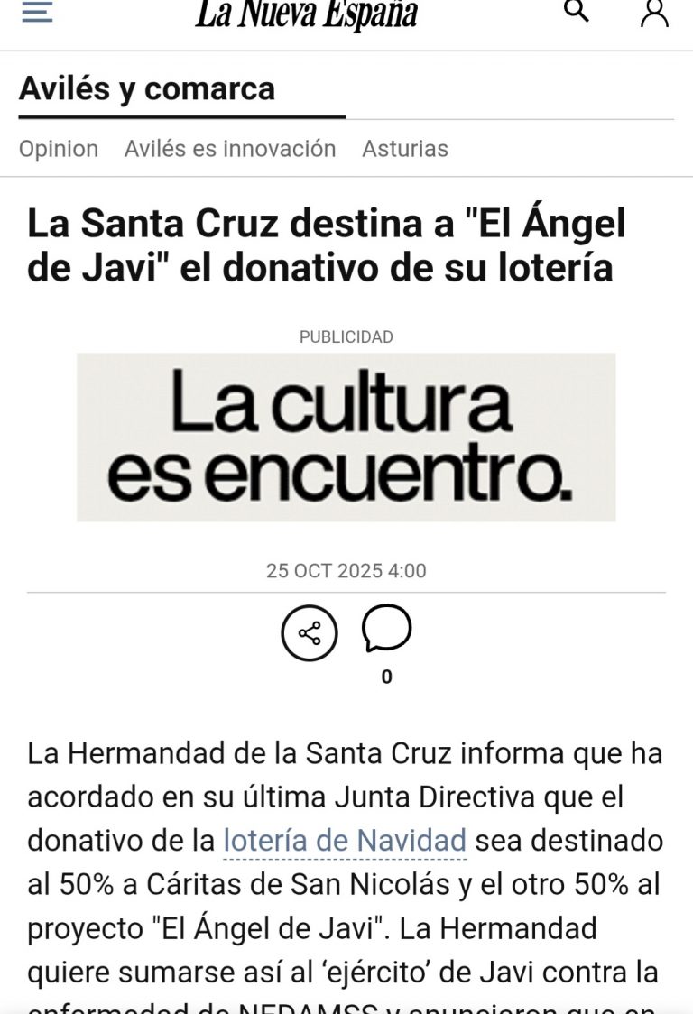 La Santa Cruz destina a «El Ángel de Javi» el donativo de su lotería