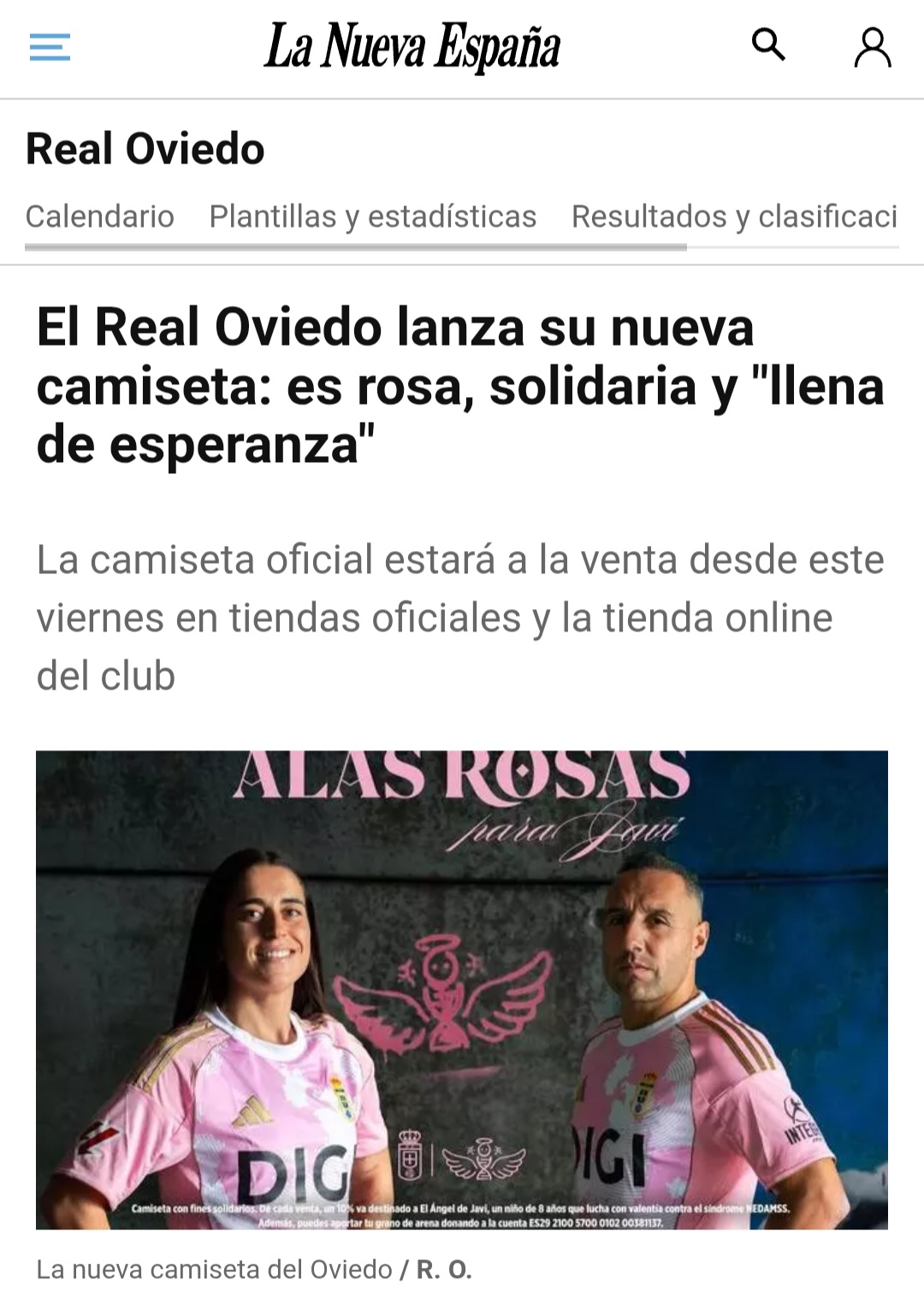 El Real Oviedo, en colaboración con la Fundación azul, presentó ayer su nueva equipación, una camiseta «cargada de simbolismo y compromiso social». El conjunto de la capital del Principado apuesta en esta ocasión por el color rosa como protagonista, en apoyo a la asociación «El Ángel de Javi», a la que se destinará el 10% del precio de venta íntegro de cada prenda.